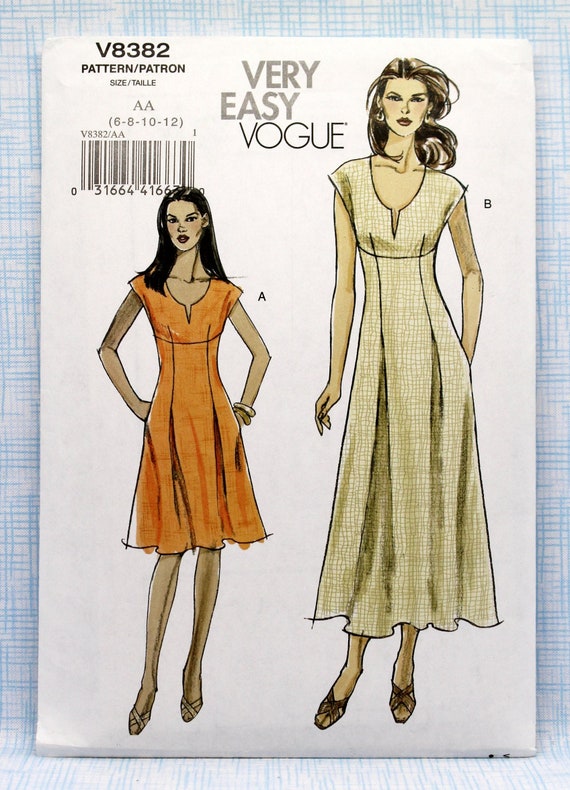 Vogue Sewing Pattern 8382 Misses Easy Dress With Empire Etsy New Zealand