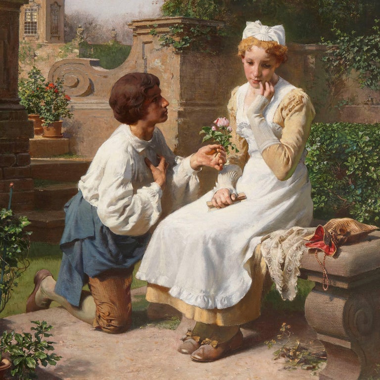Julius Victor Berger The Romantic Proposal In The Gardens 19th Century Oil Painting Of A Couple At 1stdibs